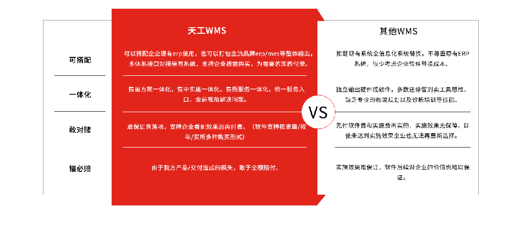 提出“可搭配,一体化,敢对赌,错必赔”的十二字方针,承诺真落地,仓储升级零风险。